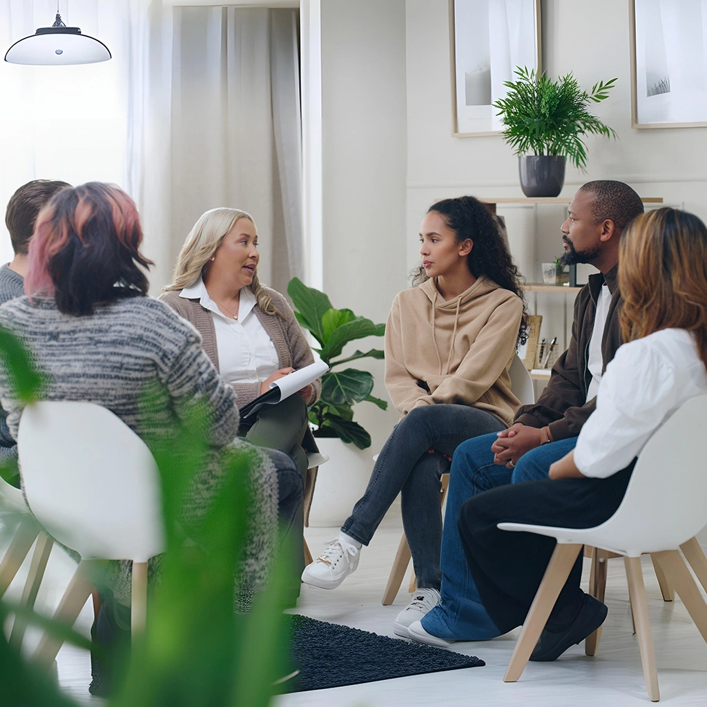 Group Therapy: Peer-based sessions that incorporate Dialectical Behavioral Therapy for emotional support, skill-building, and shared learning.